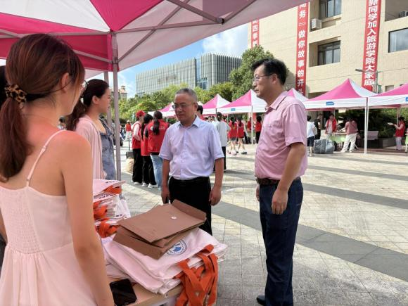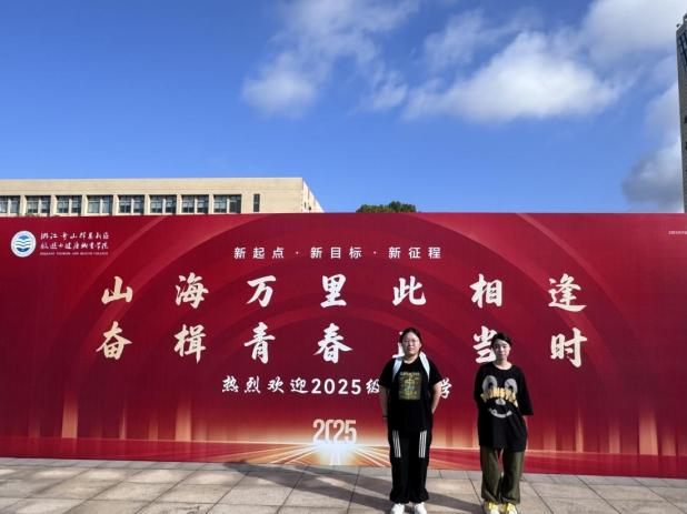 清晨的校园早已装点一新。学院门口鲜艳的迎新立牌与独具学科特色的主题喷绘相映成趣,在微风中向每一位新生致以温暖的问候。许多新生与家人驻足合影,镜头定格下一张张灿烂的笑脸,为这个特别的日子镌刻下青春的印记。