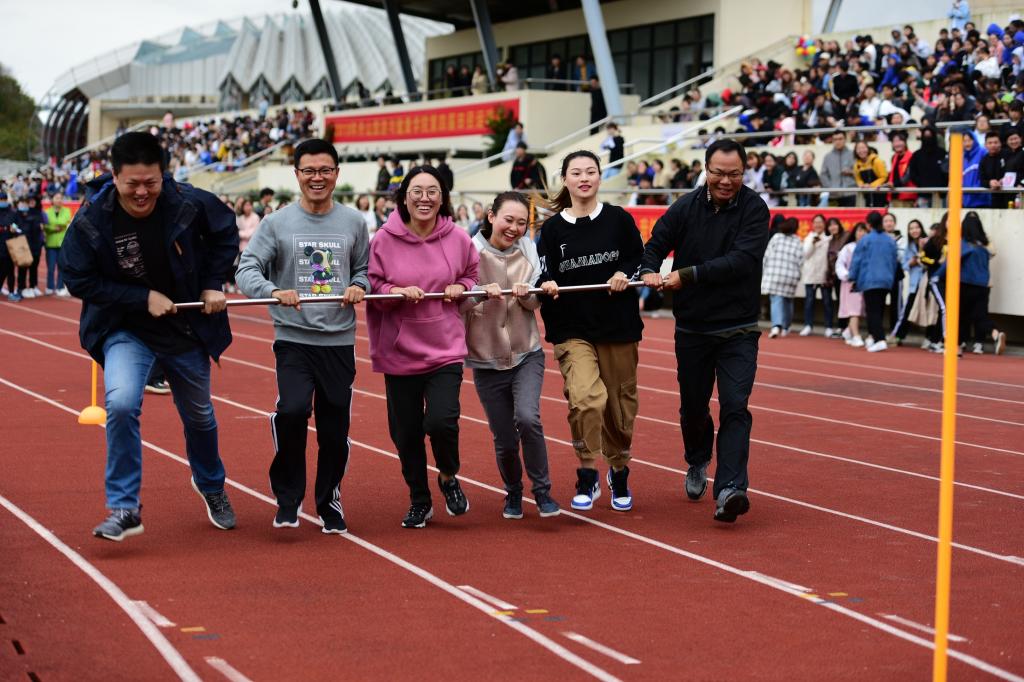 赛程尾段的教职工趣味运动会项目丰富,囊括旋风跑、羽毛球掷准、足式保龄球、毛毛虫等活动,全体教职工以饱满的精神面貌参加竞赛,最终第六工会获得团体总分第一名,第四工会获得团体总分第二名,第七工会获得团体总分第三名。闭幕式上,校领导为获奖单位颁奖。