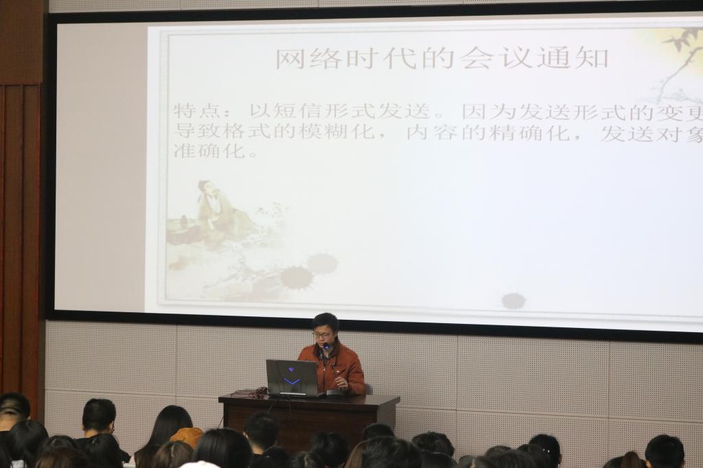 课堂上,郑永骥老师为学生干部讲解了如何写常用的公文,为学生明确了写公文的基本要求和注意事项,帮助学生干部在未来写公文方面做好了铺垫。傅林静老师为大家讲解了如何正确有效的策划学生活动,并以浙江海洋大学学生活动为范本,对于活动内容的确定与具体开展的方法做出了详细的说明。她指出,好的活动需要具有趣味性、参与性与专业性,可以整合资源,依托各类平台,做到人无我有,人有我优。老师们精彩的讲座,拓展了大家的思维,使同学们受益匪浅。