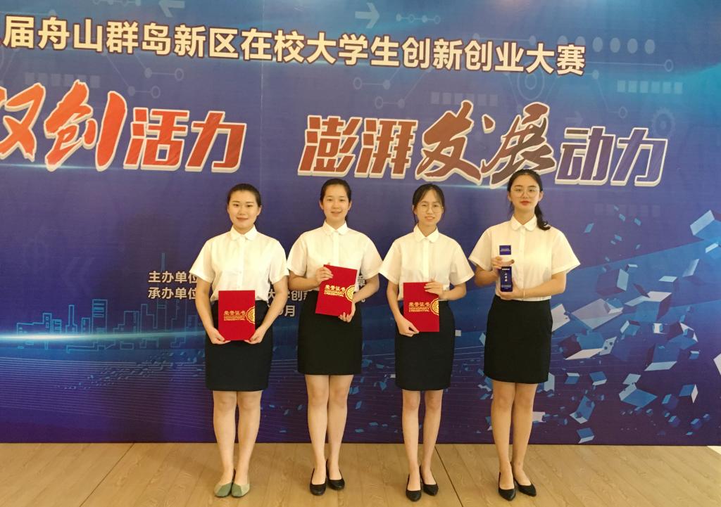 此次获奖的创业项目主题名为“轻舟”,欲打造以舟山海岛非遗文化为主题的特色民宿,致力于传承和发扬舟山非遗传统文化。作为没有创业经验的在校学生,四位同学放松心态,沉着冷静,展示了自信大方的良好精神面貌,获得了评委的一致好评,最终以第三名的好成绩获得了大赛二等奖!