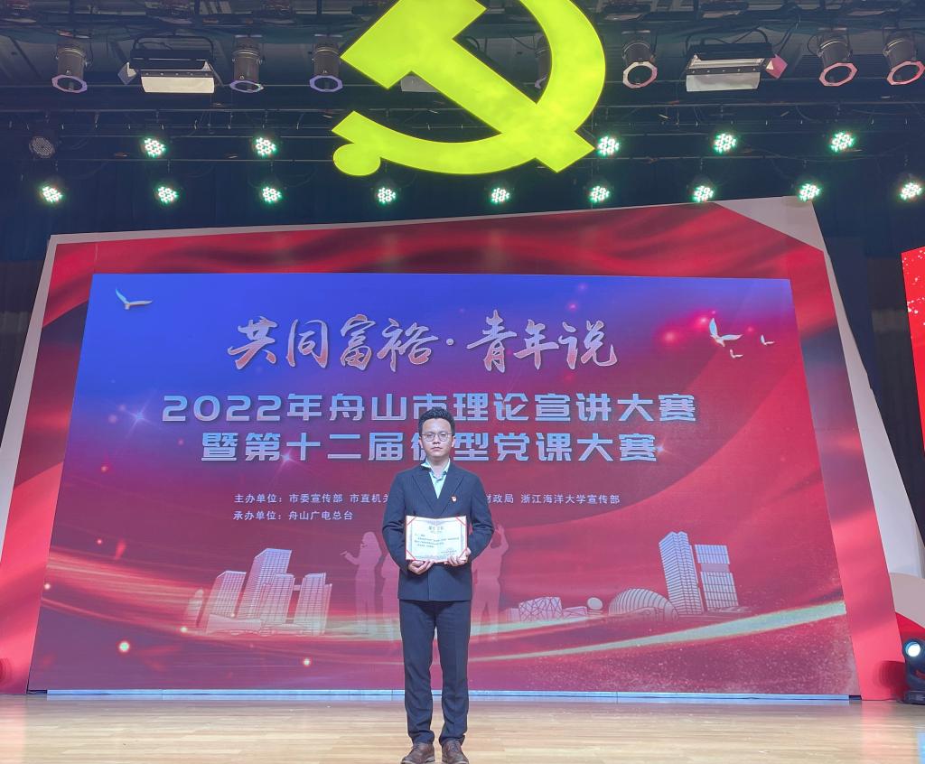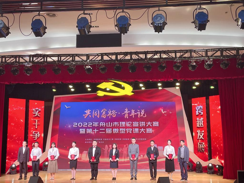 2022年舟山市“共同富裕·青年说”理论宣讲大赛暨第十二届微型党课大赛决赛5月13日下午在舟山市图书馆举行,此次共有来自全市各系统各单位的15名优秀青年党员参加现场比赛。我校旅游学院党员教师王一精心创作宣讲作品,经过层层选拔,最终获得三等奖好成绩。