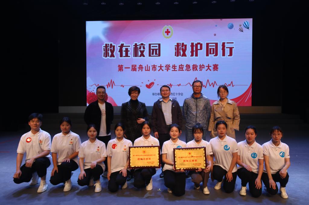 5月15日,由舟山市红十字会主办的第一届舟山市大学生应急救护大赛,在浙江海洋大学杨存国报告厅举行,全市3所高校的6支队伍参加了比赛,共计30名学生选手,我校派出2支队伍共10人。市红十字会副会长许平、我校副校长孔志华、浙江海洋大学基建处处长等领导参加、观摩大赛并为获奖团队和个人颁奖。