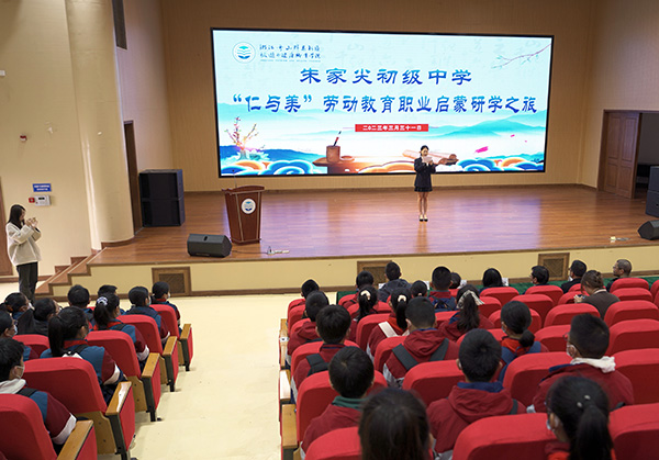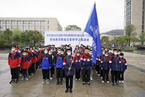 3月31日,朱家尖初中七年级段100多名师生来到我校开展“仁与美”劳动教育职业启蒙研学之旅活动。