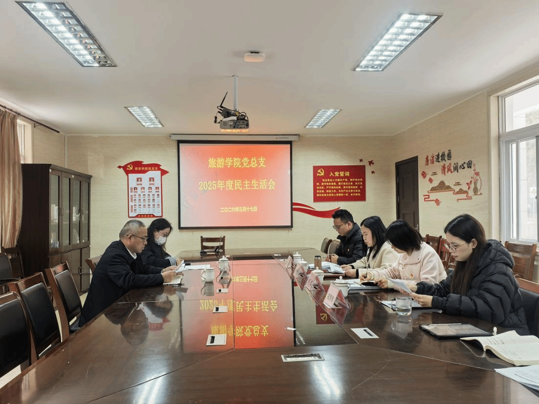 2026年3月17日下午,旅游学院党总支召开2025年度民主生活会。校党委副书记、校长郑能波到会指导,旅游学院党总支书记、院长杨奇美主持会议,旅游学院党总支成员和校党委组织部有关同志参加会议。