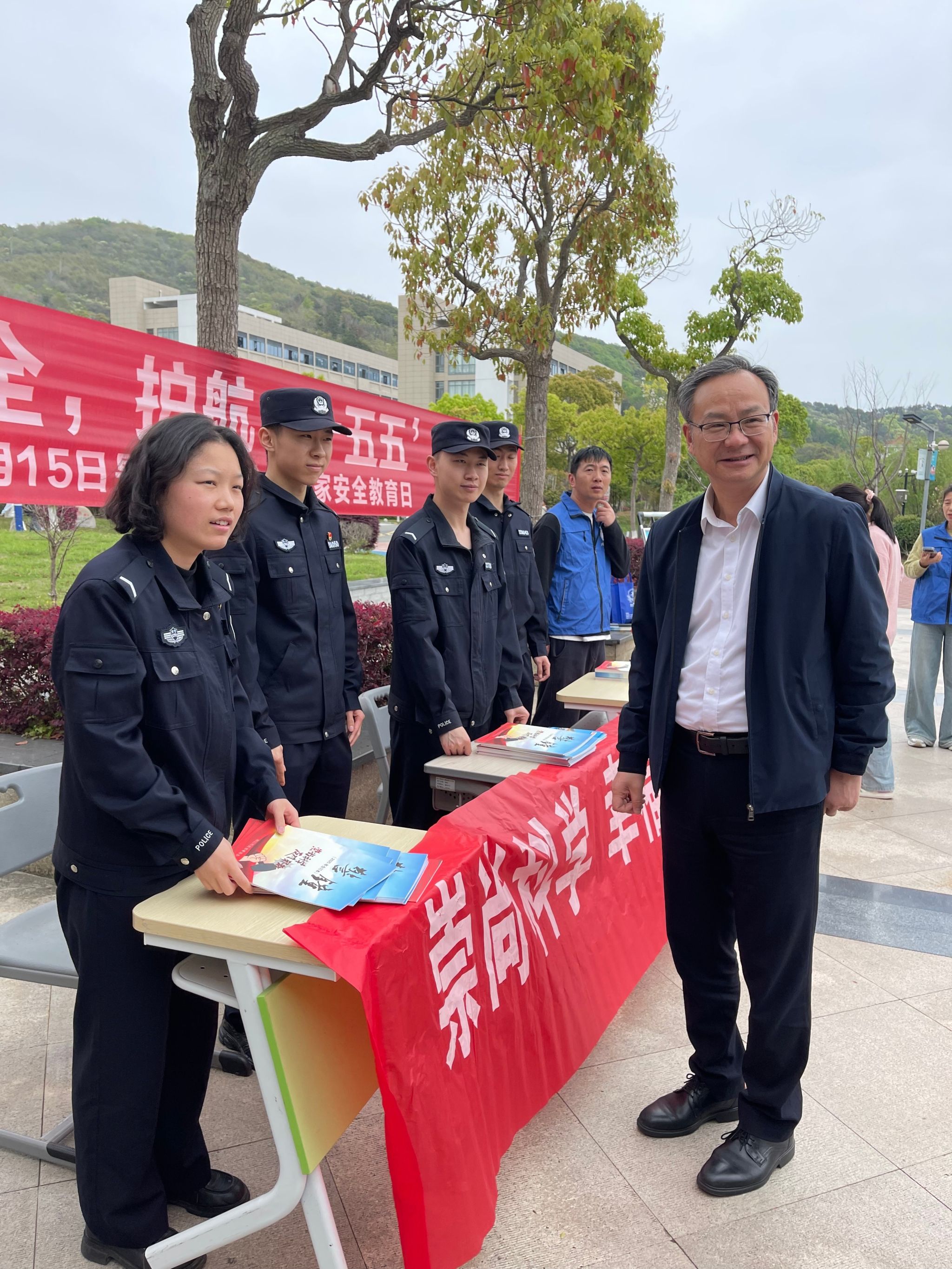 4月15日上午,普陀山公安局和朱家尖街道到校设摊宣传。针对校园欺凌、电信网络诈骗、交通安全、消防安全等校园常见安全问题,进行了细致讲解,手把手教授师生自我防范技巧和应急处置方法,现场互动氛围热烈,师生们积极提问、踊跃参与,进一步加深了对国家安全知识和安全防范技能的理解与记忆。校党委书记徐方明亲临现场,慰问现场干警和工作人员,鼓励师生积极参与国家安全宣传教育,提升国家安全意识,自觉维护国家安全和校园和谐。