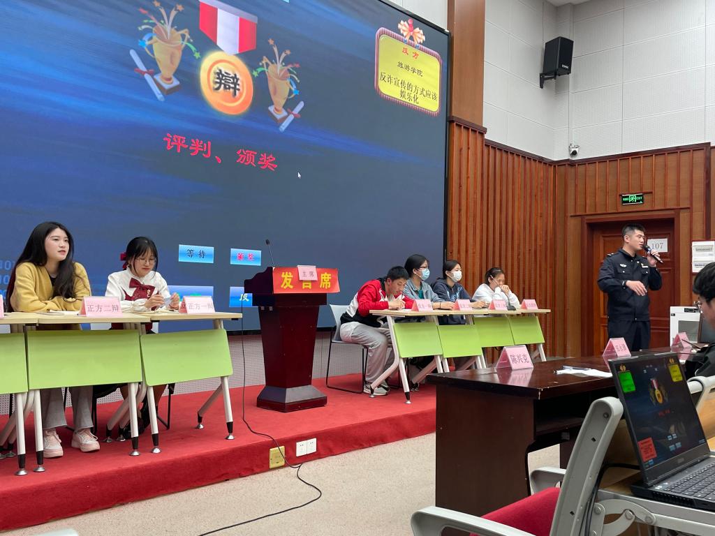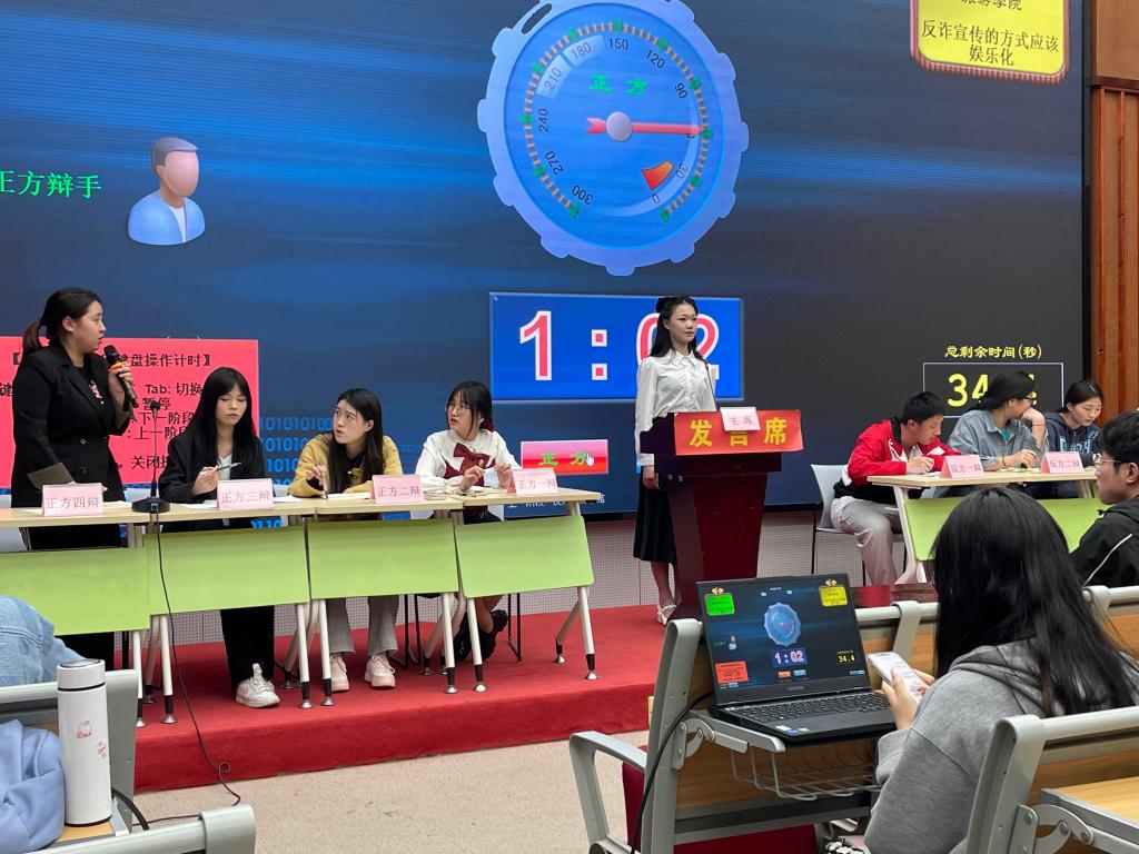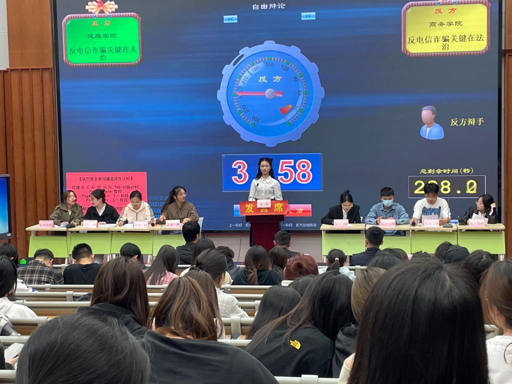 为进一步强化学生预防电信网络诈骗意识,提升反诈知识和反诈本领,筑牢校园安全守护线,5月11日晚,舟山旅游健康学院在明德楼107开展“反诈防骗,青春同行”主题辩论赛。本次比赛由校团委主办,演讲与口才小队承办。