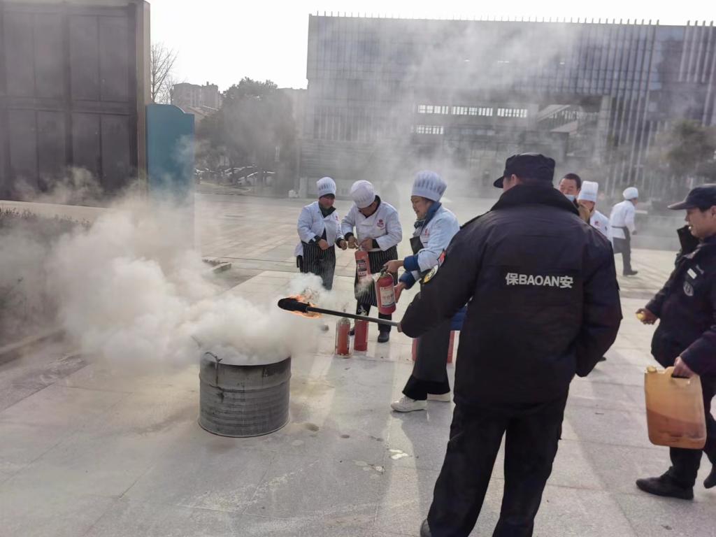 随后,保卫处相关人员讲解了灭火器“一提、二拔、三瞄、四压”的使用方法,并现场进行了灭火器的使用演示。同时,还特别强调了灭火器的种类和适用范围,以及不同类型火源所需的不同灭火器。物业、食堂、超市、邮局4家外包服务单位,40余名骨干人员和一线工作人员参加培训。