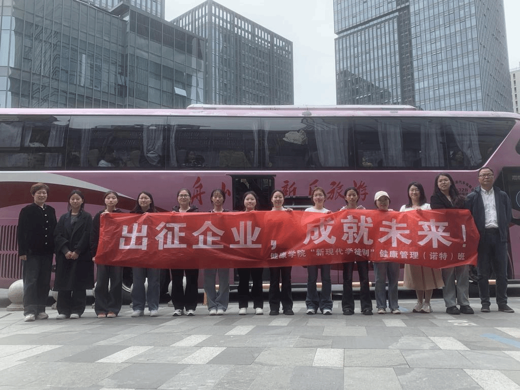 为促进行企业参与职业教育人才培养全过程,实现专业与产业融合,课程设置与岗位需求融合,教学过程与生产过程融合,推进我院健康管理专业“四阶四位式”现代学徒制人才培养,2024年3月25日,由学院党总支书记胡炳波、副院长马怡婷、健管教研室副主任曹莎莎、辅导员郑晓娴领队,共35名学生分赴杭州辛巴体育、浙江诺特健康科技开展为期三个月的企业阶段学习。