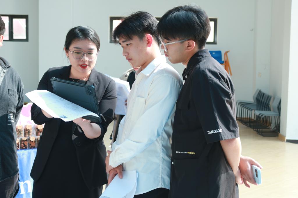 下午双选会现场气氛热烈,学生与用人单位之间的交流非常积极。学生们积极展示自己的才能和热情,而用人单位则认真评估每一位学生的潜力和适配度。此外,学院还邀请了经验丰富的专业老师为实习生提供简历诊断和个性化就业指导服务,帮助学生科学规划职业生涯,为学生和用人单位牵线搭桥、答疑解惑。