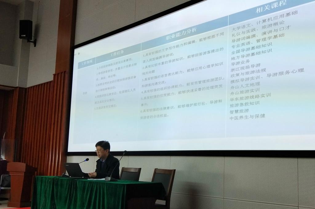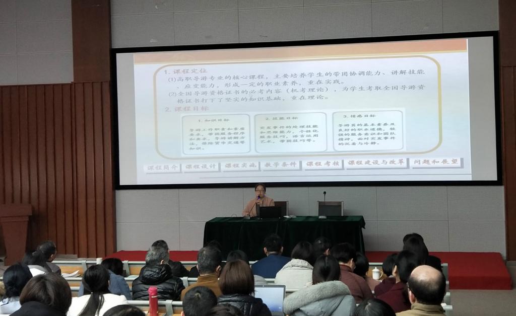 黄刚、娄月红老师分别进行了导游专业剖析和《导游业务》说课程的展示。旅游分院副院长邬玮玮就分院“三说”活动部署及迎评整体工作推进作了交流。督导室侯明贤教授对二位教师的展示,从形式、内容、方法三个方面作了精彩点评,肯定了成绩,指出了不足,提出了希望,并就说课提出了十大“说法”。评建办主任徐澍敏教授对本次教研活动作了肯定,从内容有逻辑、思考有深度、教改有力度、评价多元化、工作有成绩、专业有特色谈了六大体会。最后王旭光副书记总结指出,“三说”教研活动既是评估的要求,也是提升教师教学水平的过程。学校领导的全程参加,体现对“教学为中心”的重视。两位教师的展示,为我校“三说”活动拉开序幕,奠定了良好基础。同时,希望全体教师通过说专业、说课程、说课堂,更加关注产业了解产业,明白以后我们要面临什么,在不断的学习改革中提升自己。