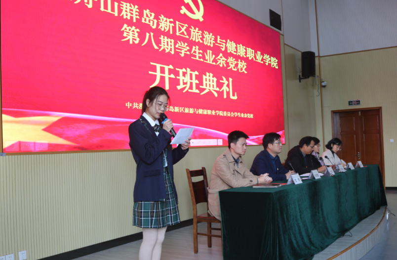 开班典礼由乐优捷主持,组织人事处处长胡炳波宣读了本次业余党校的组织机构。随后,学员代表叶珈妮发言,表达了向党组织积极靠拢的决心。