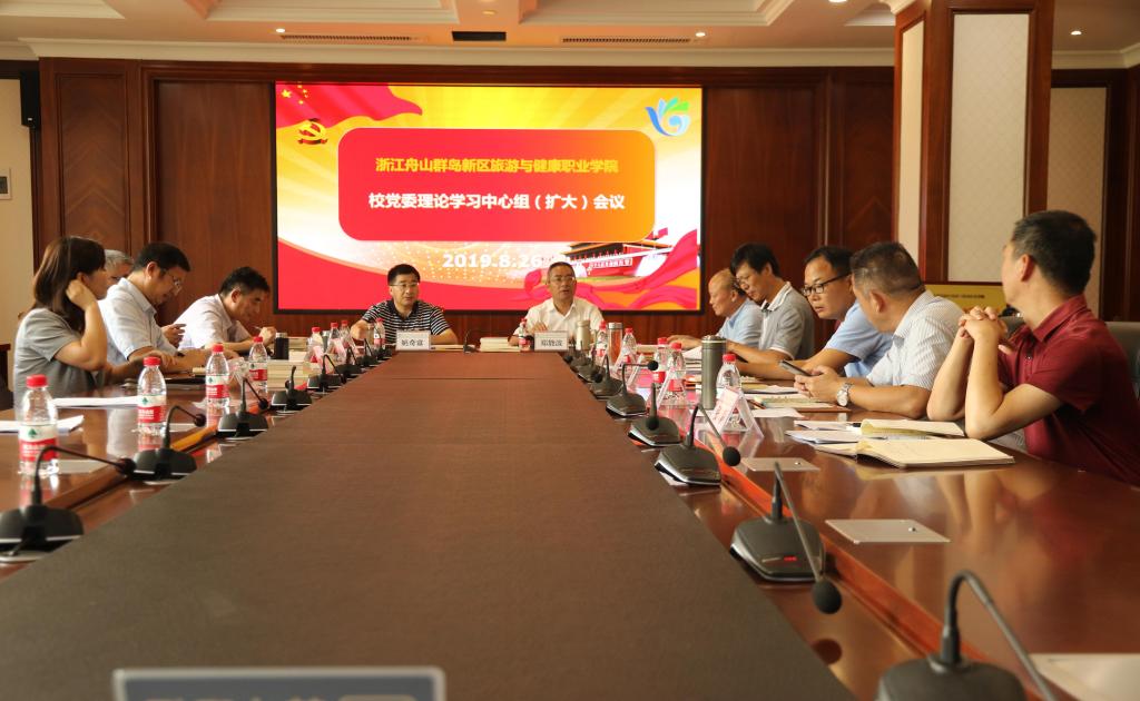 2019年8月26日下午,我校召开党委理论中心组(扩大)学习会,专题学习“不忘初心、牢记使命”主题教育。党委理论学习中心组成员、党政办、组织人事处、宣传部、纪检监察室及各级基层党总支、直属支部主要负责人参加会议,校党委书记姚奇富主持会议。