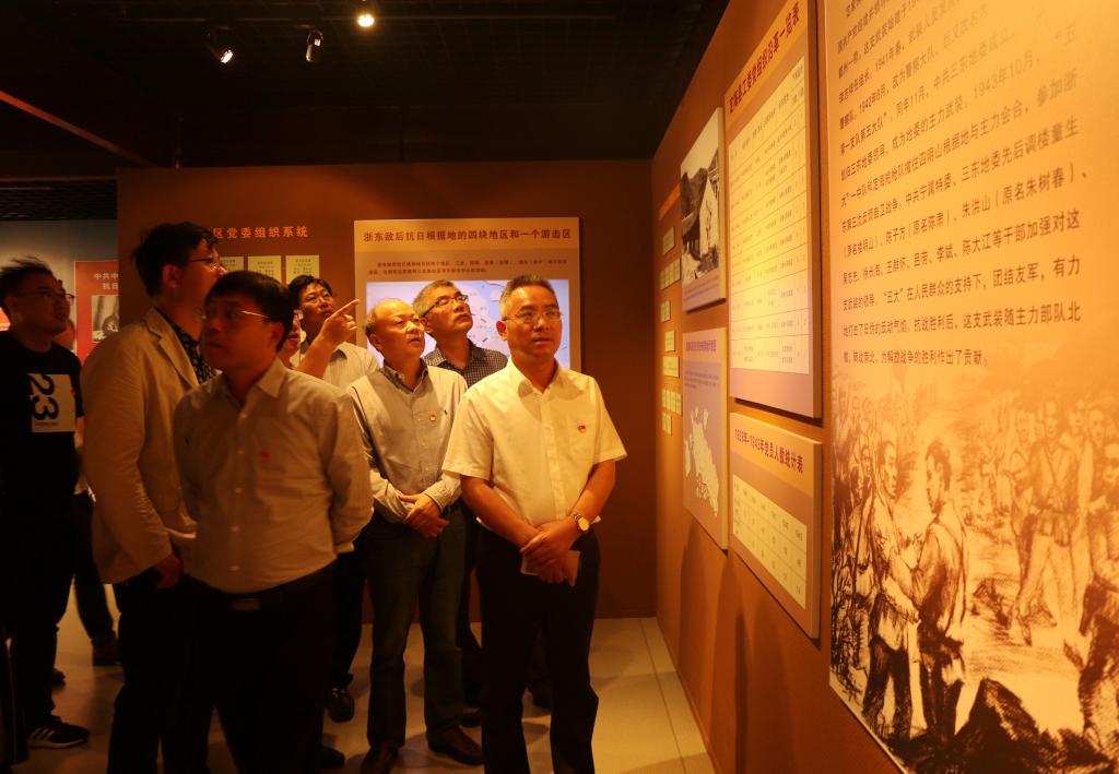 中共定海工作委员会是抗日战争期间中共定海地下县工委领导机关所在地,是我党领导定海人民开展抗日游击战争的红色基地。展示厅内,党员同志们驻足观看,瞻仰珍贵的革命文物、历史文献,聆听杨静娟、张叔馨、楼童生、吴志先、胡尖锋等一批中共党员和革命先烈的英雄事迹,深切体悟这些共产党人为了民族解放和人民幸福浴血奋战、矢志不渝的赤诚初心。