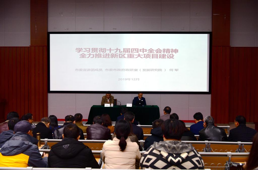 根据省委“不忘初心、牢记使命”第二批主题教育工作部署和学校主题教育工作安排,我校邀请了市委宣讲团成员、舟山市委市政府政研室(发展研究院)副院长何军同志做题为《学习贯彻十九届四中全会精神、加快推进新区重大项目建设》的专题讲座。全体教职工参加学习。