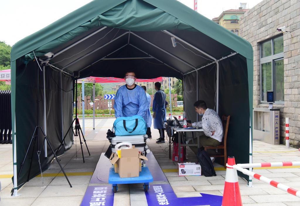 接站大巴到校后,学生有序下车,进行洗手消毒,测温亮码,学校防疫人员为学生的行李进行一一消毒,防疫志愿者为学生搬运行李。虽然新学期的开学因疫情延期,但此刻,大家感受到融融的暖意。我们也希望,在这样一个特殊的“封闭式”新学期,舟旅健的学子能更加珍惜时光,做好防疫的同时努力学习,取得新的进步。