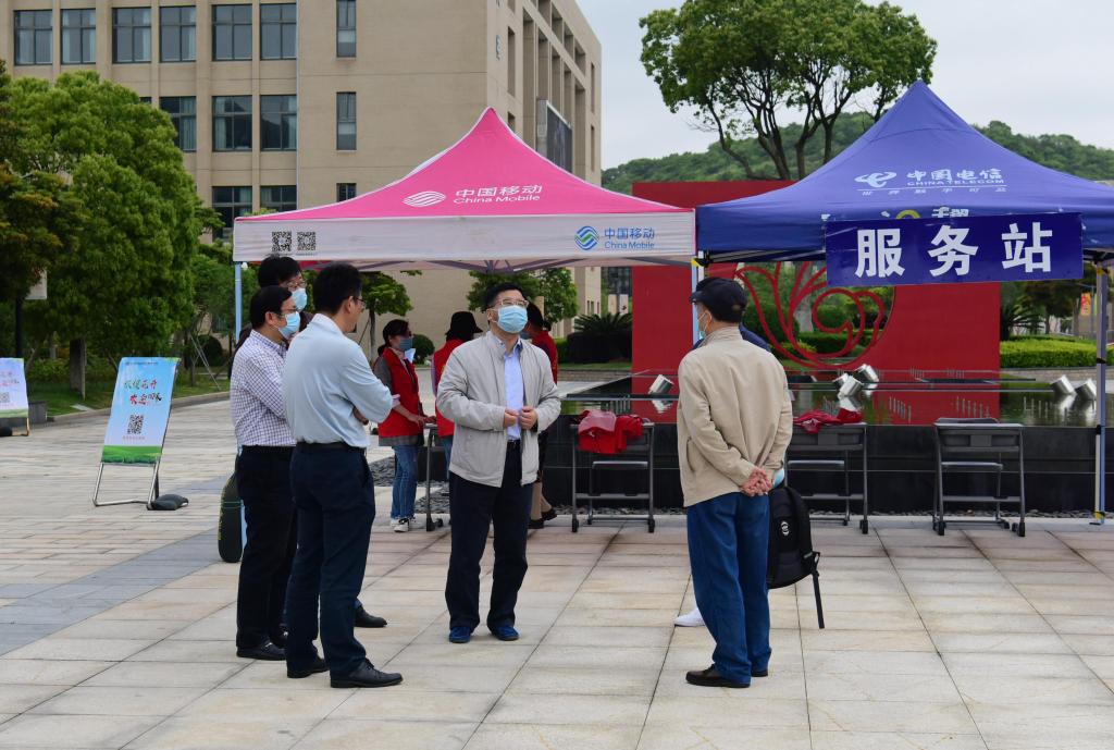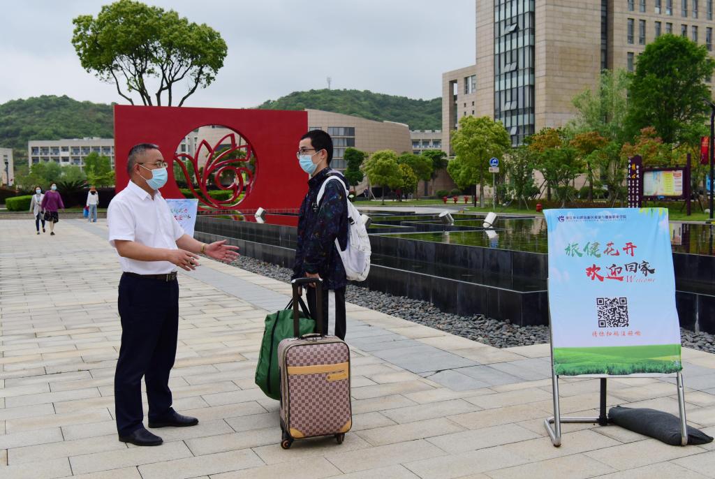 旅健花开,欢迎回家。一早,校党委书记姚奇富等校领导就在校门口迎接学生。
