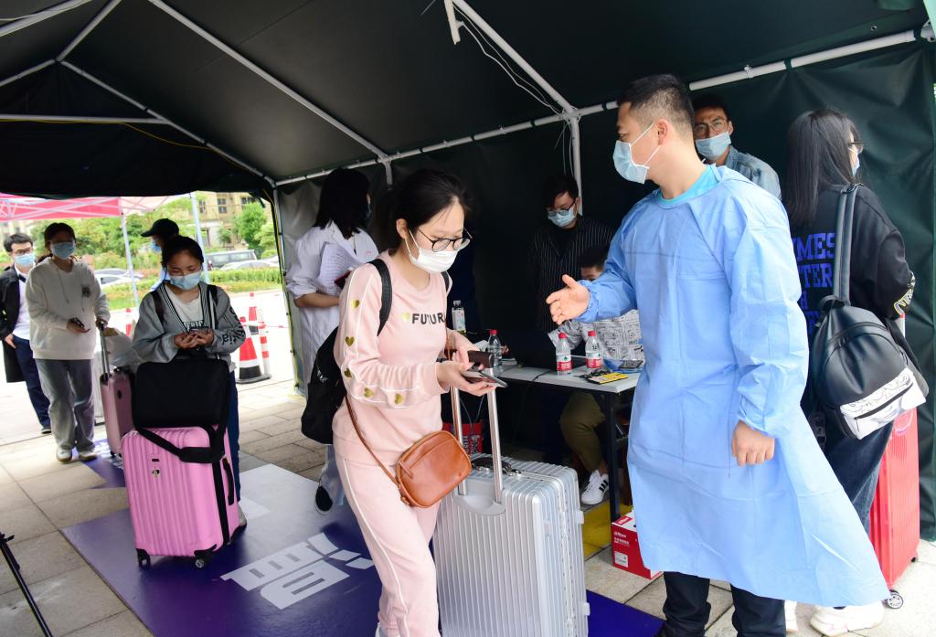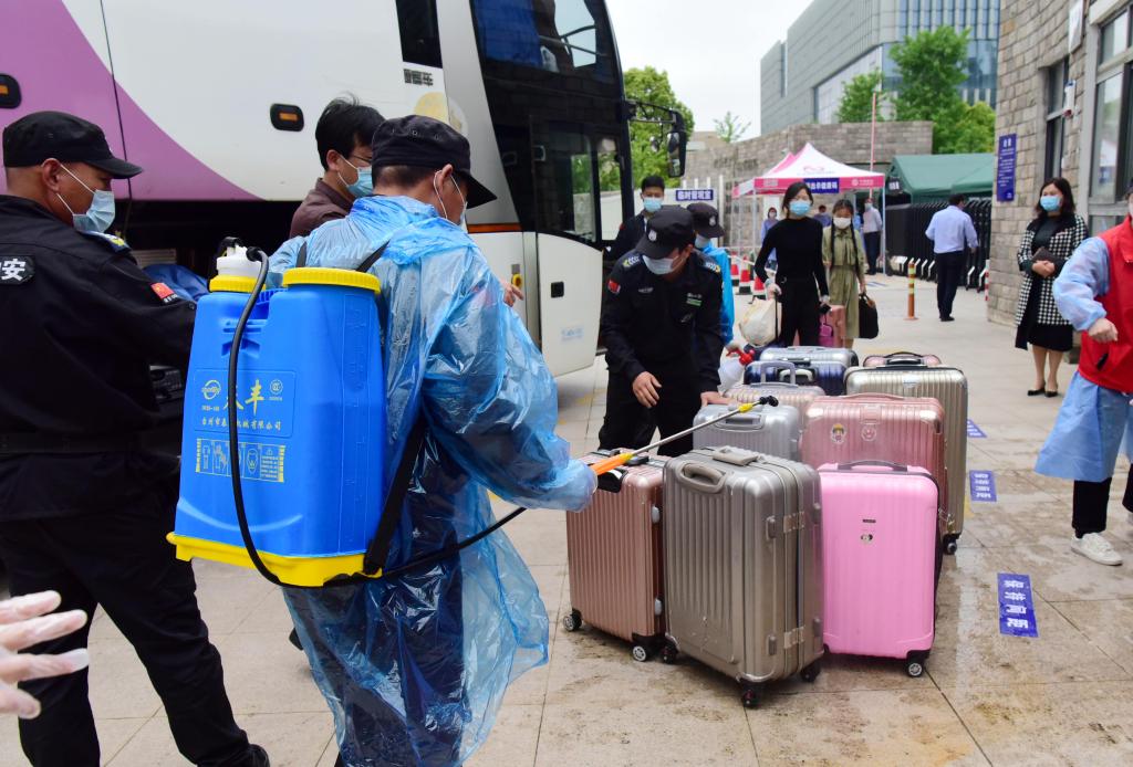 按照返校预案,5月7日、8日两天,学校分批次安排专用大巴前往客运站接应返校学生,亮码、测温、消毒等无异常情况后统一至校。