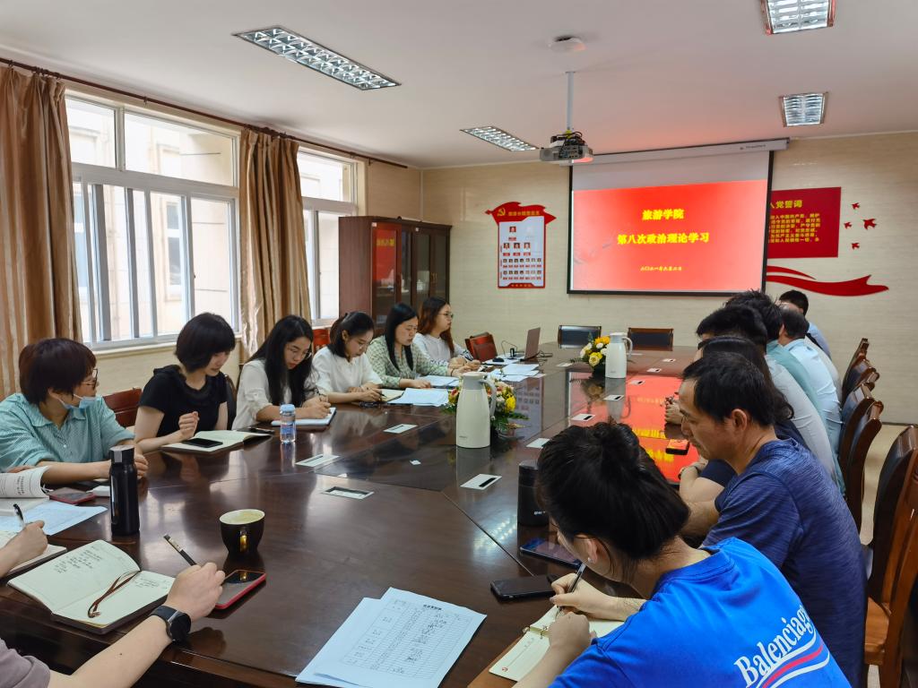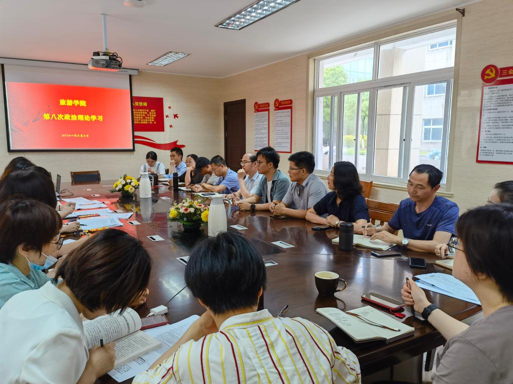 为认真贯彻《浙江舟山群岛新区旅游与健康职业学院关于进一步加强教职工政治理论学习的实施意见》和学校工作安排,旅游学院于2021年6月2日14:00在博雅楼101会议室召开2021年第八次政治理论学习,旅游学院党总支书记、院长杨奇美主持会议,旅游学院全体教职工参加。