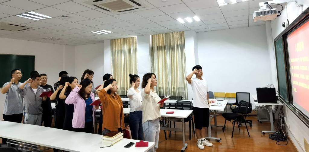 理论学习结束后,全体党员又开展了一次“重温入党誓词”活动,党总支为每位党员发放了“政治生日贺卡”和《平语近人》等党员读本,大家认为这样的“仪式感”特别有意义,通过重温入党誓词,时刻铭记党员使命,进一步增强党性修养,也要把党史学习教育的精神内涵融入到实际的教育教学工作中。