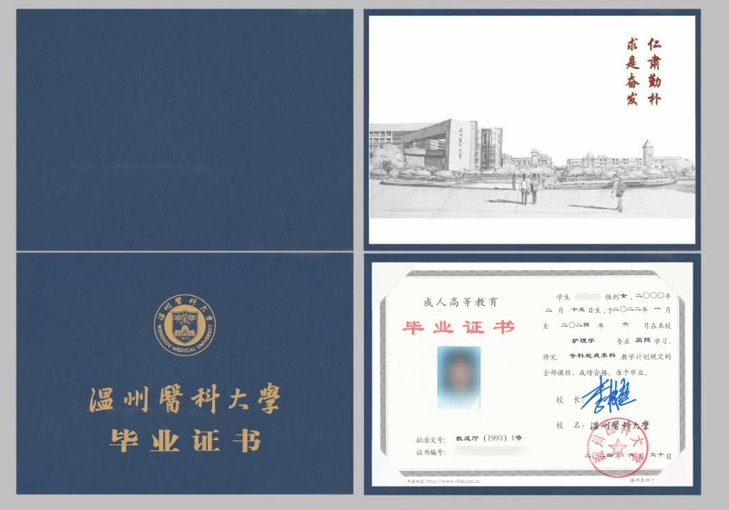 学生修满本专业教学计划规定的学分,成绩合格,符合毕业条件者,由温州医科大学颁发经教育部电子注册、国家承认的高等学历继续教育本科毕业文凭;符合学士学位授予条件的本科毕业生,授予学士学位。
