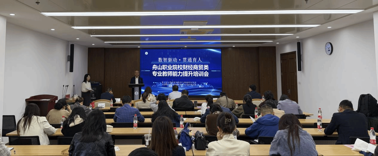 本次培训以“数智驱动·贯通育人”为主题,聚焦数智技术引领与中高职协同发展两大核心,由我校联合舟山市财经商贸类职业教育行业指导委员会共同承办,浙江国际海运职业技术学院、舟山职业技术学校(舟山技师学院)、舟山航海学校、舟山旅游商贸学校和我校等多所院校的财经商贸类骨干教师参会。