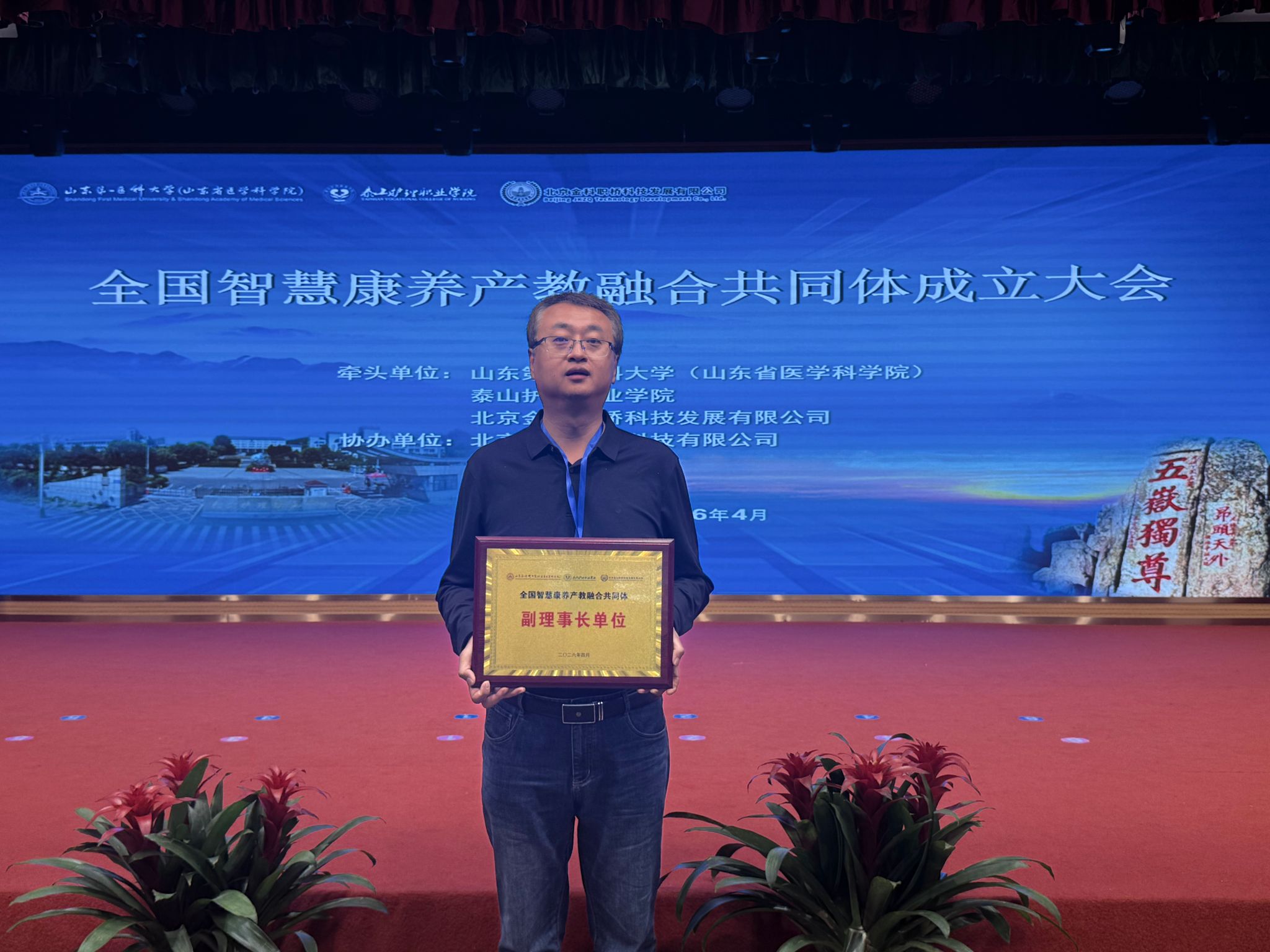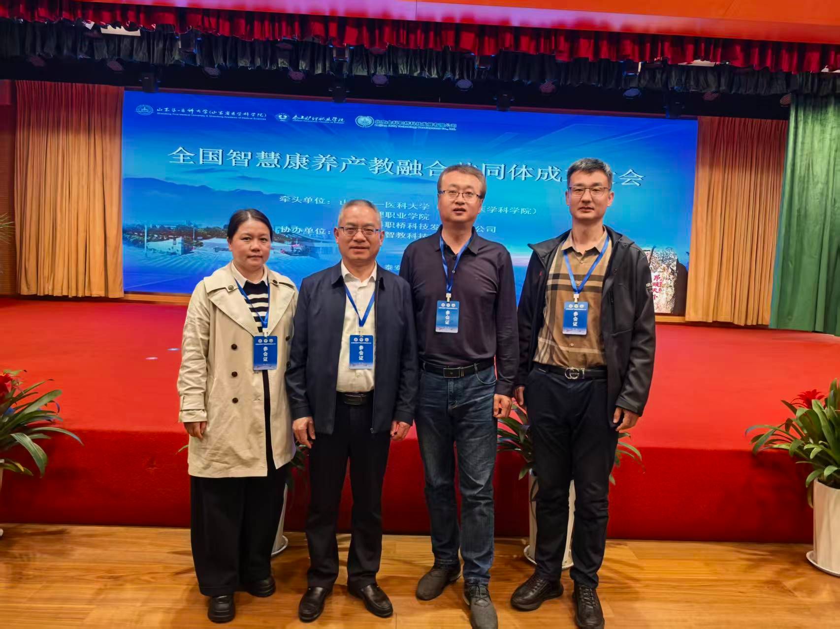 2026年4月2日,“全国智慧康养产教融合共同体”成立大会在山东泰安隆重举行,我校被推选为副理事长单位,校长郑能波带队与全国100余家参建单位代表共商产业发展与人才培养大计。