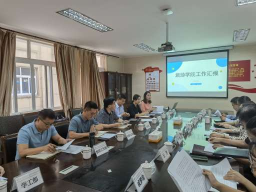 2021年10月13日上午,校党委书记姚奇富、副校长李涛携党委办公室副主任李长亮(主持)、人事处处长刘杨、教师工作部部长王尤跃、教务处处长邬玮玮和学工部相关人员等一行到旅游学院进行调研,旅游学院班子成员、综合办公室成员和各教研室负责人参加了调研会。