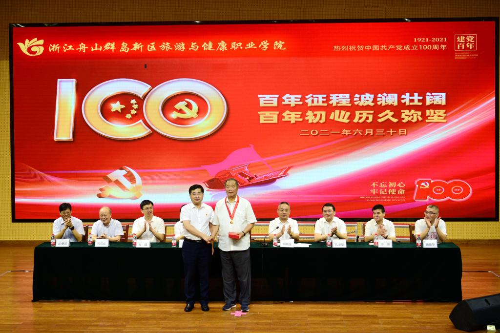 他指出,学校自办学以来,始终与国家同向共进、与地方同频共振。在学校的发展历程中,老党员发挥了不可替代的中流砥柱作用,他们兢兢业业为党工作,踏踏实实教书育人,用实际行动践行了入党誓言、诠释了初心使命。