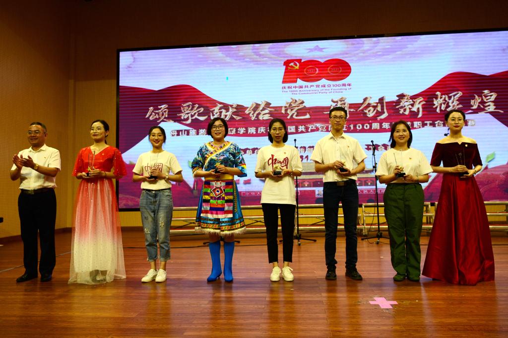 第二阶段是以“颂歌献给党,再创新辉煌”为主题的教职工合唱比赛。7支教职工队伍参加本次合唱比赛,2支学生代表队伍为本次比赛进行表演。各代表队服装精美,队伍整齐,以优美的旋律、激昂的状态和饱满的热情表达了对党的衷心热爱和真诚歌颂,也深深地感染了在场的观众,现场气氛热烈,掌声雷动。本次唱红歌比赛,让我们又一次重温了革命战争年代的历史,回顾了革命胜利的艰辛,激励了教师们的爱国热情,唱出了教师内心深处热爱祖国、热爱生活的感恩之心,唱出了教师们乐观进取、积极向上的风发意气,老师们表示,作为一名人民教师,我们要牢记使命,不忘初心,一心向党,育人育己!郑能波校长分别为获奖合唱队颁发了最佳合唱奖、最佳风采奖、最佳组织奖、最佳台风奖、最佳创意奖、最佳人气奖、最佳潜力奖。