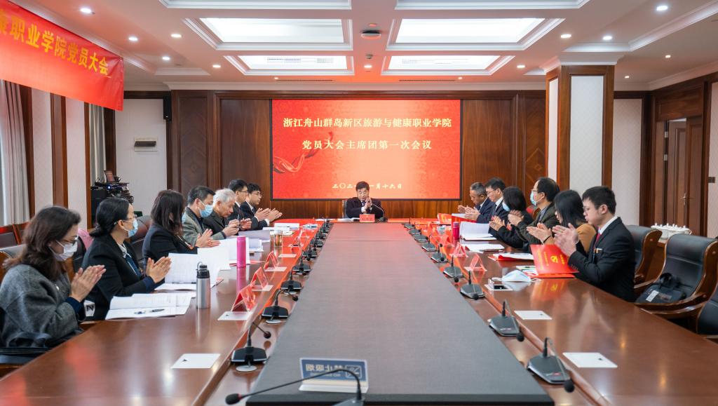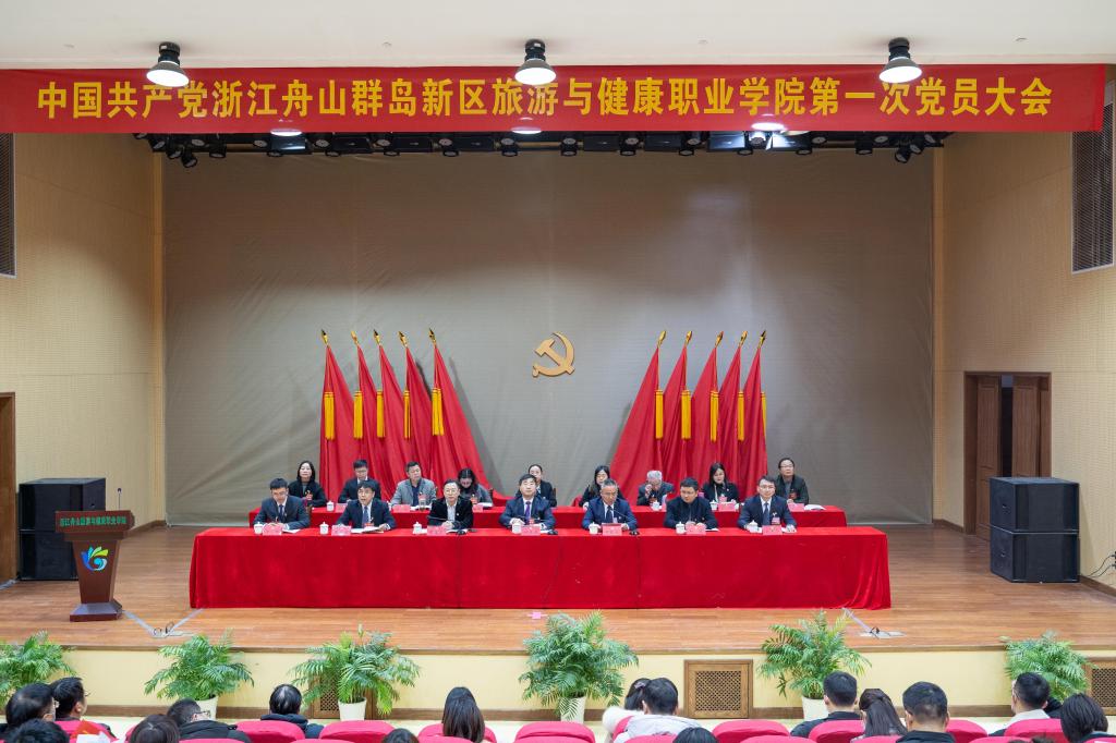 2021年1月16日上午,全体师生热切关注的中国共产党浙江舟山群岛新区旅游与健康职业学院第一次党员大会在致远报告厅隆重开幕。市教育局党委书记陈海波、市委组织部干部二处处长刘波同志出席开幕式。校党委书记姚奇富作题为《勇担新时代使命 聚力高质量发展 为建设具有海洋特色的创业型高职院校而奋斗》的党委工作报告(以下简称《报告》),党委副书记、校长郑能波主持会议,党委领导班子成员及其他主席团成员在主席台就座。