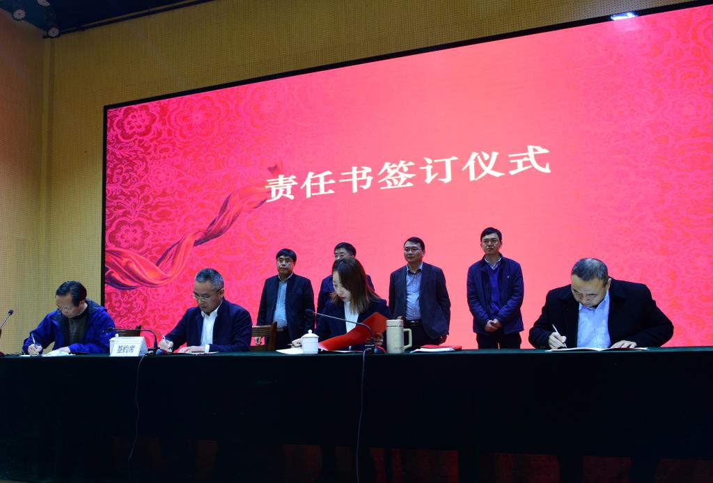 会议举行了省双高建设任务承担单位责任书签订仪式。办公室、人事处、教务处、旅游学院、图书信息中心、外事办公室等相关院、部负责人上台同郑能波校长签订了责任书。
