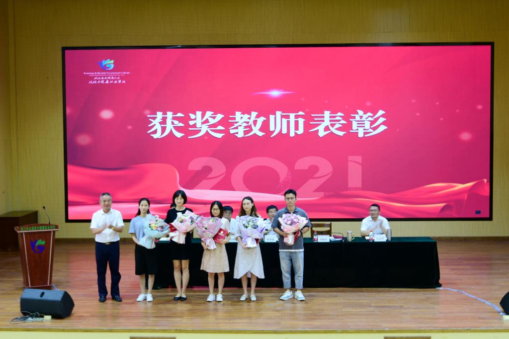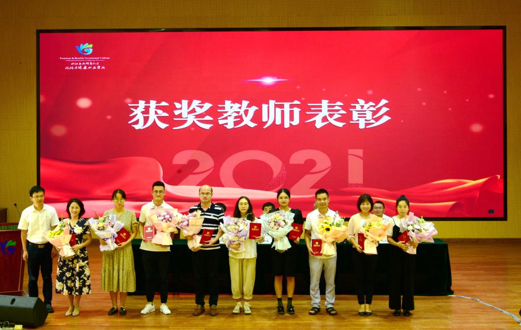 会上,副校长张朝阳宣读各类表彰决定,表彰了辅导学生在省级I类竞赛中获一、二、三等奖的教师,2021年度校级青年教师教学竞赛获奖教师,2021年浙江省高职院教学能力比赛团体二等奖教师。校党委书记姚奇富、校长郑能波、副校长孔志华、纪委书记方波分别对获奖教师颁发荣誉证书。随后黄贞贞、毛雨婷作为教师代表和学生代表在大会上进行了发言。