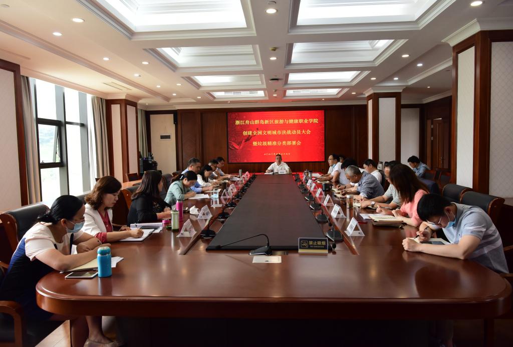 校党委副书记,创城办主任王旭光做全校决战动员,同时详细部署了各责任部门在创建全国文明城市的各项任务;孔志华副院长传达了5月26日全市教育系统创建全国文明城市决战动员大会精神,并对《舟山市党政机关事业单位生活垃圾精准分类工作实施方案》进行了解读;纪检监察室主任张毅传达了《舟山市创建全国文明城市工作责任追究办法(试行)》。
