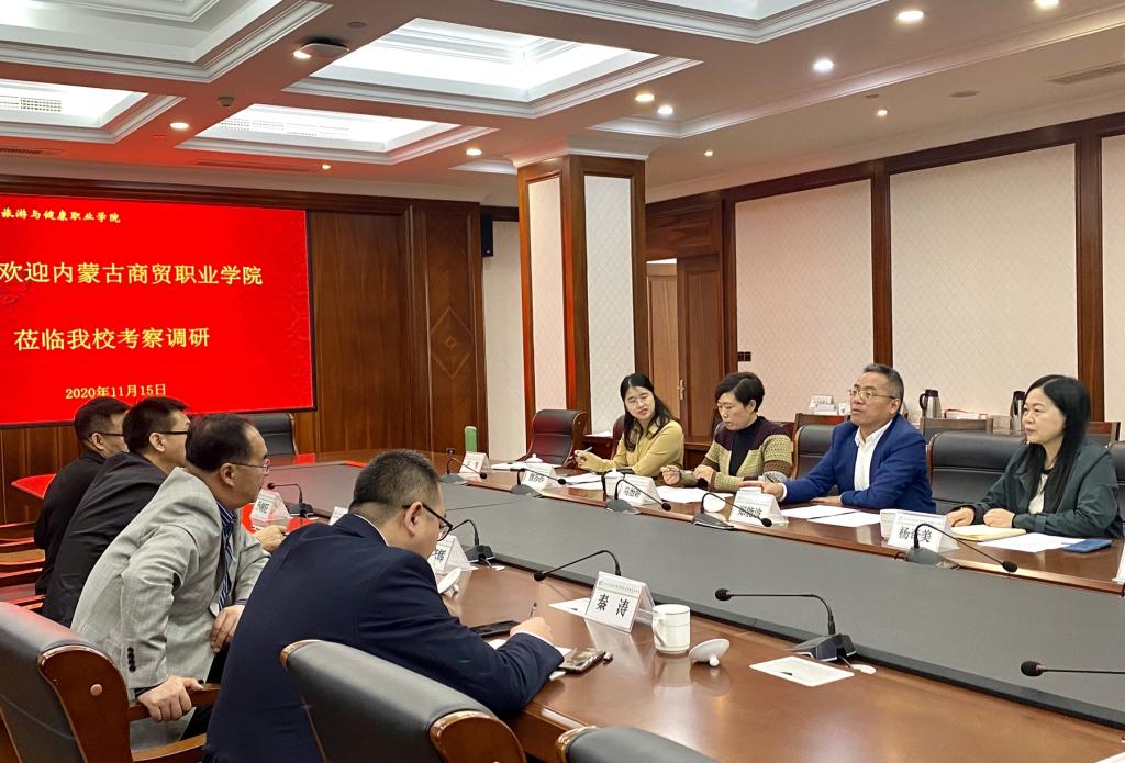 2020年11月15日,内蒙古商贸职业学院院长肖彦辉、商务管理系主任卢生奇等一行4人来校,就护理健康相关专业设置、专业师资配备、专业实训基地建设、有关高职院校办学经验等方面工作考察交流。