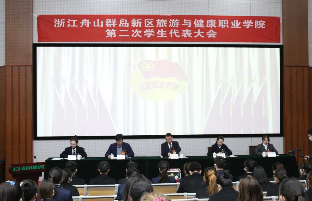 2020年12月16日,浙江舟山群岛新区旅游与健康职业学院第二次学生代表大会在明德楼107教室隆重召开,校党委委员、副校长孔志华,学工部副部长团委负责人乐优捷,浙江舟山群岛新区学生联合会执行主席黄江淮,浙江国际海运职业技术学院学生会执行主席戴泽博,校团委副书记兼大会秘书长王珊珊,校团委干事兼大会副秘书长陈艺璇,各二级学院团委书记和101名学代会代表出席会议。