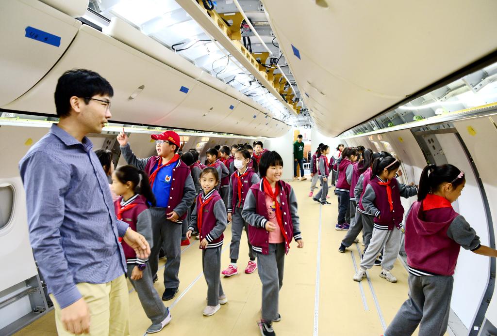 此次研学活动是我校2019年成功申报舟山市研学营地以来接待的首批研学团队,我校高度重视接待安排,由校科研与社会服务处牵头,协同旅游学院、健康学院和舟山航空培训中心(波音合作机构),多次商讨方案设计,举全校之力腾出尽可能多的实训室让研学师生进行职业体验,甚至还开放了舟山航空培训中心(波音合作机构)让研学师生现场观摩飞机制造流程,南海实验学校师生十分珍惜这次难得的观摩机会,观摩结束,纷纷自发在模拟机舱前拍照留念。