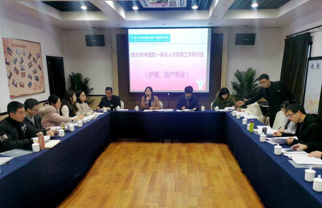 为深入对接中高职一体化五年制人才培养方案,12月27-29日,由我校举办的2019年中高职一体化人才培养工作研讨会在永康召开。校长郑能波、副校长孔志华和永康市卫健局局长李兴周出席会议并讲话,校党委副书记王旭光,教务科研处、招生就业处、各分院(系)负责人及相关教师,和来自全省各地的15所合作中职学校的校领导和教师代表应邀参加会议。会议围绕“中高职一体化人才培养方案及选拔考核改革”的主题进行研讨。
