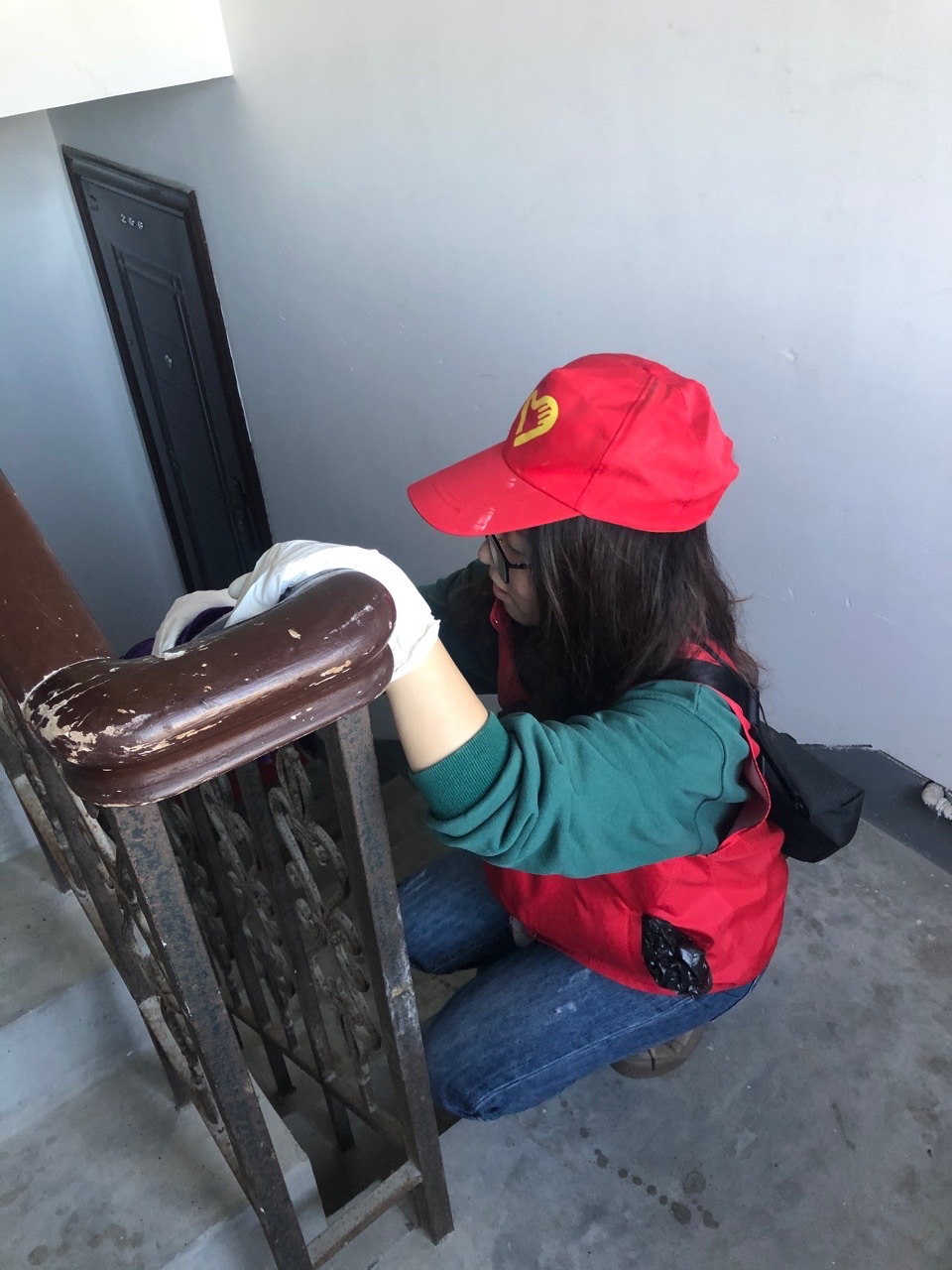 党员师生志愿者们分工合作,拿着扫帚、带着抹布、拎着水桶,以两人为一组,打扫楼道卫生,清除墙面上的小广告,清洗楼道内楼梯扶手、消防设施、水电表设施、牛奶箱。大家一边清理一边向群众开展宣传,同时号召大家积极抵制胡乱张贴小广告的行为,用自己的行动维护好城市的洁、净、美,努力做文明传播的使者。