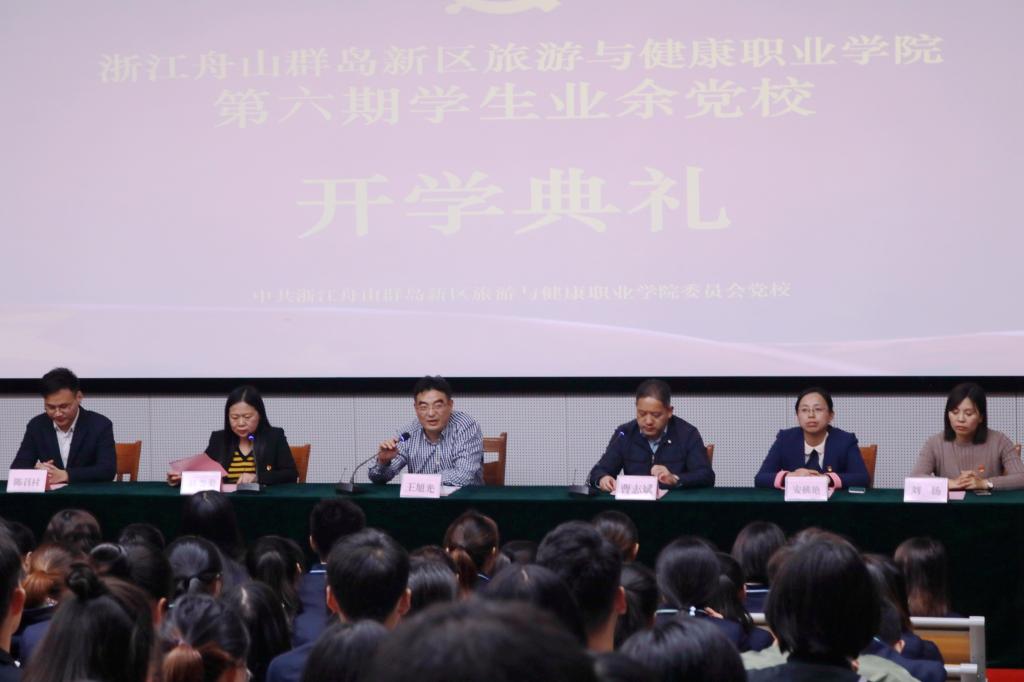 2018年11月30日,第六期业余党校党校开学典礼在教学楼107举行,校党委委员、副书记王旭光,学工部部长、学生处处长曹志斌,健康分院党总支书记杨奇美,旅游分院党总支副书记安桃艳,商务系直属党支部副书记陈召村和公共教学部副主任、直属党支部书记刘杨出席。曹志斌部长主持典礼。
