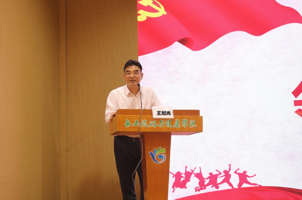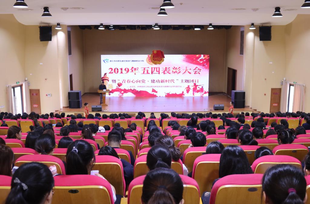 为纪念“五四”运动一百周年,迎接中华人民共和国成立七十周年,5月9日,由校团委主办的2019年“五四”表彰大会暨“青春心向党·建功新时代”主题团日活动在报告厅举行。出席本次大会的领导有校党委副书记王旭光,健康分院院长、党总支副书记竺静,学生工作部(学生处、招生就业处)副部长(副处长)、商务系党总支副书记沈伟,旅游分院党总支副书记安桃艳和公共教学部副主任、直属党支部书记刘杨。校团委书记王尤跃主持。