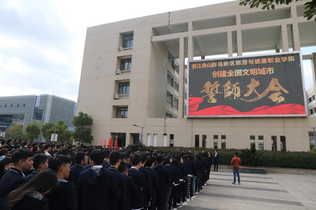为进一步巩固和扩大我校创建全国文明城市的成果,动员全体师生振奋精神,全面冲刺创城工作的国家测评,11月22日中午,我校举行创建全国文明城市誓师大会暨创城志愿分队成立仪式。党委委员、副院长何岳成,党委委员、副院长陈爱国,学工部部长、学生处处长曹志斌,后勤保卫处副处长李世华,健康分院党总支书记杨奇美,旅游分院党总支副书记安桃艳,商务系直属党支部副书记陈召村,校团委书记王尤跃出席大会,各分院、系500余名学生代表共同参与。