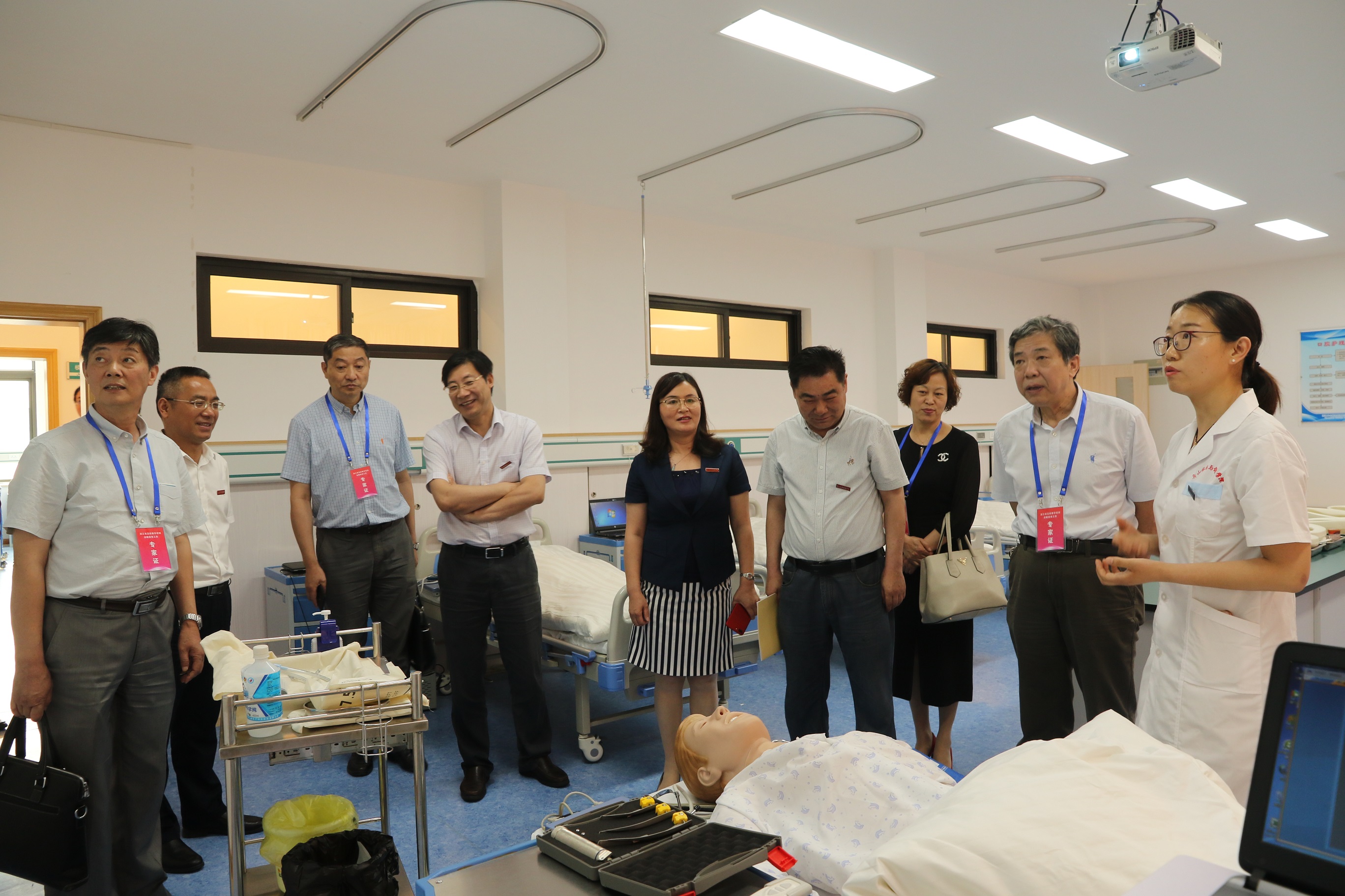 2018年6月5日上午,省教育厅教学巡查专家组在校党委书记陈仕俊、院长郑能波、党委副书记王旭光和相关部门负责人的陪同下,实地考察了学校健康分院实训楼、旅游综合实训基地、波音员工培训中心等校内实训基地。