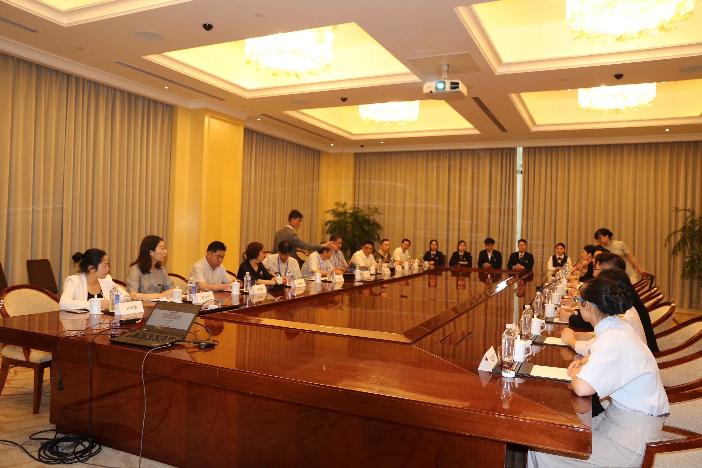 5日下午,教学巡查专家组在校党委副书记王旭光和教务处、旅游分院负责人的陪同下,考察了学校校外实训基地——朱家尖绿城威斯汀度假酒店,听取了我校万豪卓越人才学院校企合作成果汇报,并对校企合作订单班学生进行了座谈。