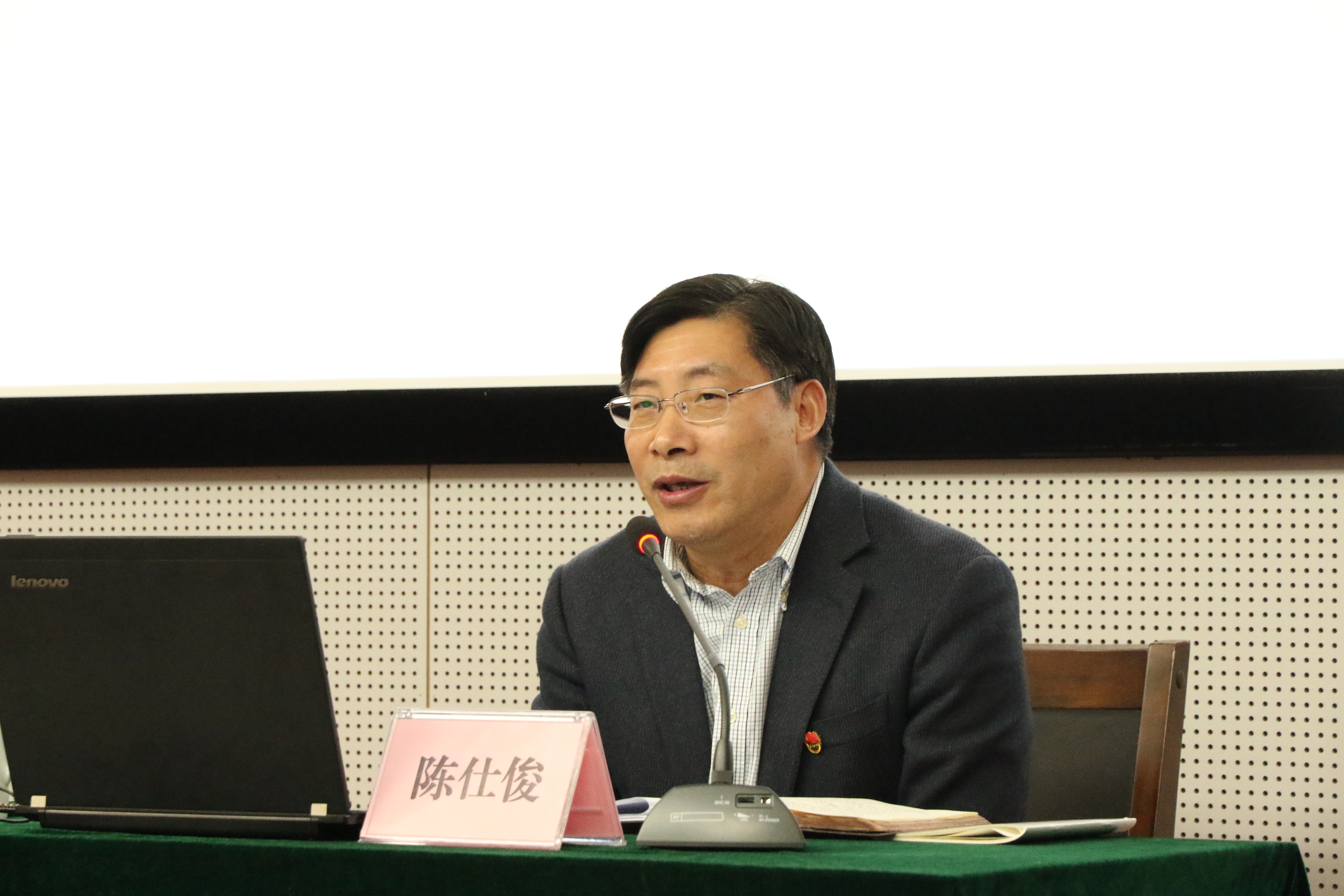 12月20日下午,学校党委书记陈仕俊为全体党员作学习党的十九大精神党课宣讲,会议扩大到全体教职工和部分学生党员代表。