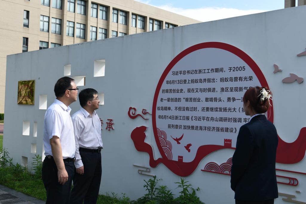 王玉庆主席一行实地考察了学校波音培训中心、蚂蚁岛精神文化墙、校史馆、实训楼等地,并进行了座谈。
