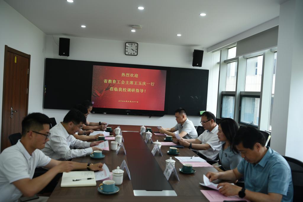 6月21日,省教育工会主席王玉庆、副主席李茜、组织建设部部长郑喆、市教育工会主席刘伟一行来我校调研指导工作。校党委书记姚奇富,副校长、工会主席张朝阳等陪同调研。