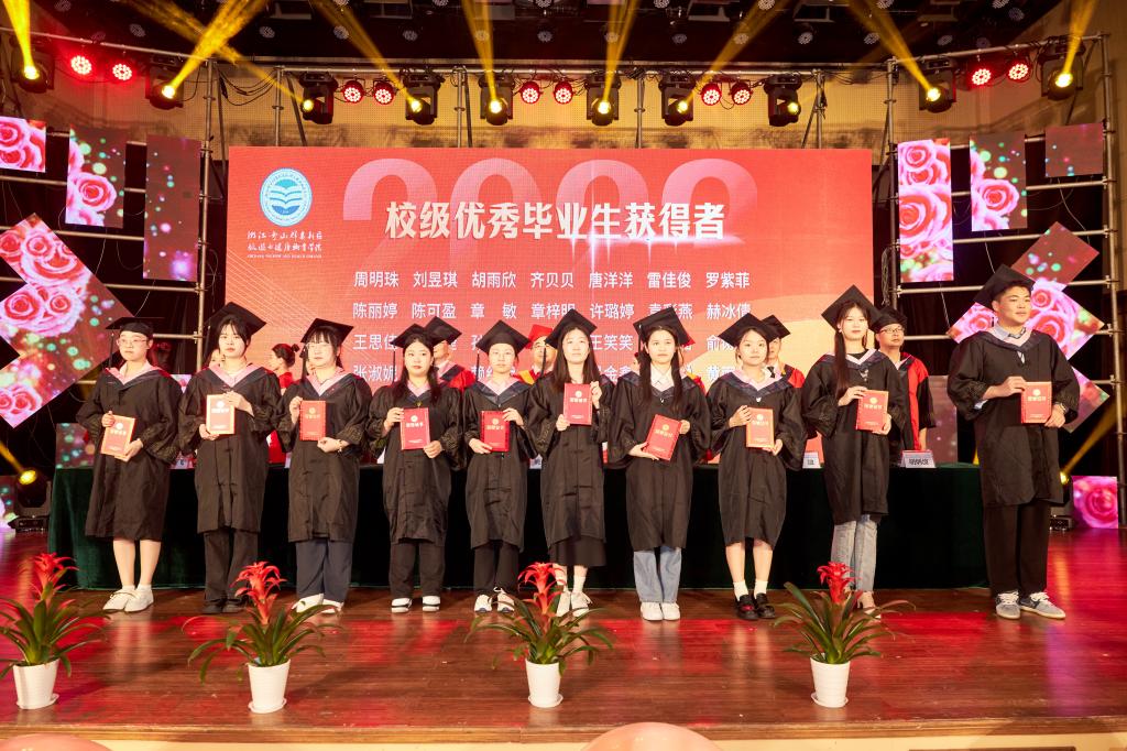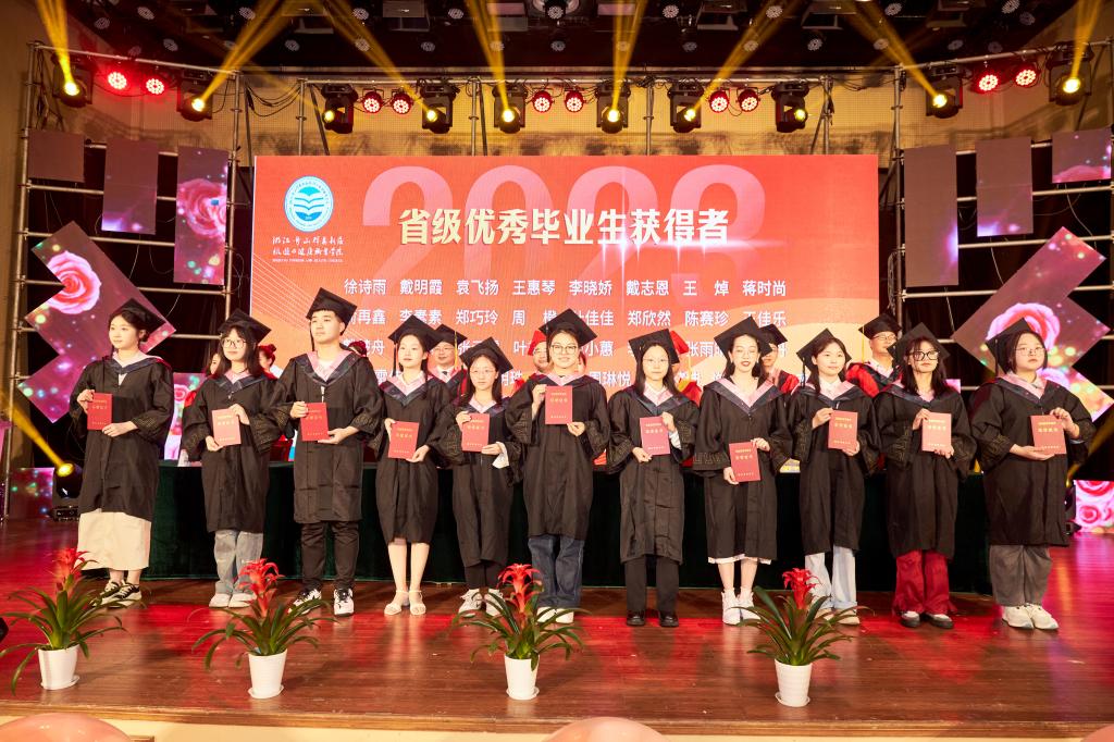 典礼现场宣读了《浙江省教育厅办公室关于公布2023届浙江省普通高等学校优秀毕业生名单的通知》和《浙江舟山群岛新区旅游与健康职业学院关于表彰学校 2023届校级优秀毕业生的决定》,对33名省优秀毕业生、135名校优秀毕业生和学校就业之星进行表彰。