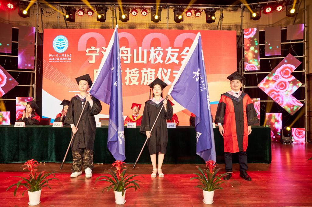 典礼上,校党委书记姚奇富代表学校接受毕业生对母校的赠礼。孔志华副校长为舟山校友会、宁波校友会授旗仪式。