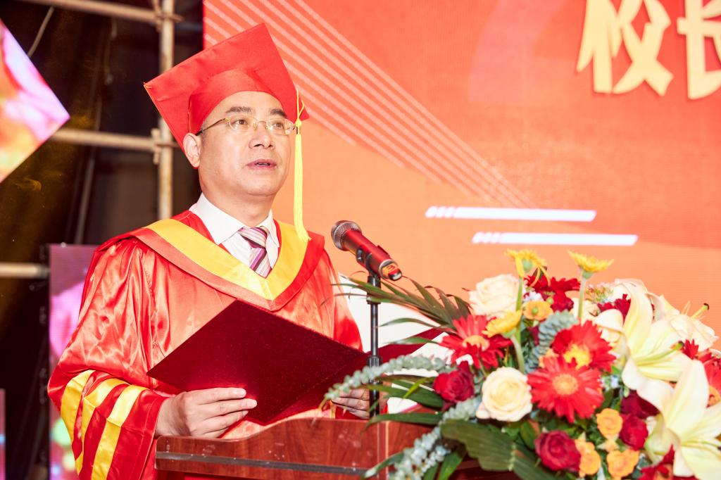 校长郑能波代表全校上下向2023届毕业生们送上最热烈的祝贺与最诚挚的祝福,并以“踔厉奋发正青春,勇毅前行向未来”向毕业生致临别赠言。他表示,踔厉奋发正青春,就是要始终坚守初心,矢志拼搏奋斗,不断创造青春新的精彩;就是要始终坚持学习,在学习中反观自身不足,提升自我修养,汲取人生力量;就是要始终奋发图强,用自己勤劳的双手和不懈的奋斗,书写最美的青春故事。勇毅前行向未来,就要志存高远,勇担大任,争当时代追梦人;就要追求卓越,精益求精,以执着不懈的汗水和精益求精的匠心将事情做好、做细、做精;就要直面挑战,百折不挠,以年轻人的志气、骨气、底气创造精彩人生。郑校长最后祝福大家永远年轻,永远热泪盈眶,祝愿大家历尽千帆,走出半生,归来仍是少年。