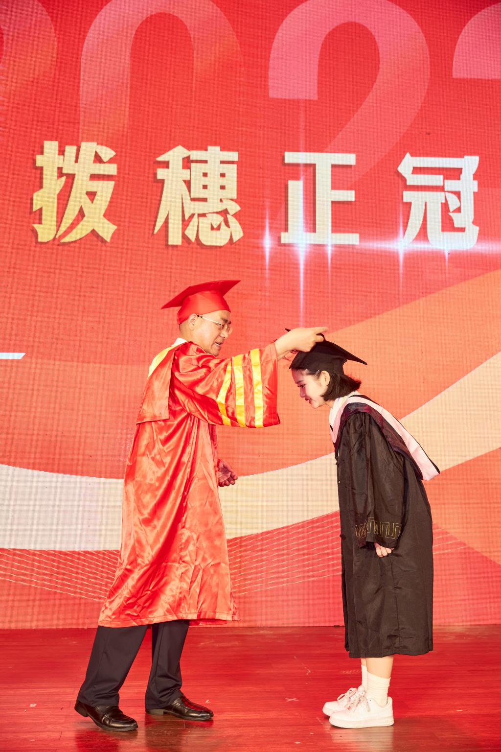 典礼最后,校长郑能波为毕业生代表进行拨穗、颁发毕业证书,并合影留念。